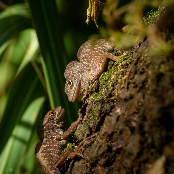 The research team found that when these lizard species occur together, they divide up their habitat in predictable ways — the Cuban brown anole shifted to spend more time on the ground, and evolved longer legs to run faster in this habitat, while the slightly larger Cuban crested anole lived in vegetation above the ground.