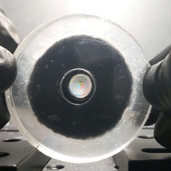 The hydrogel material contracts in response to light, allowing us to control the lens without touching it by projecting light onto its surface. This property also allows us to finely control the shape of the lens by selectively illuminating different parts of the hydrogel. By eliminating rigid optics and structures, our system is flexible and compliant, making it more durable and safer in contact with the body.