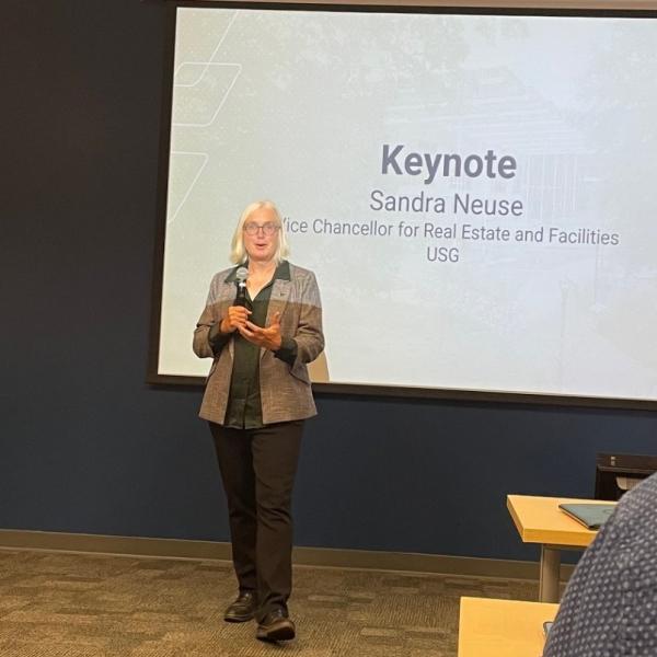 USG Vice Chancellor of Real Estate and Facilities Sandra Neuse was the keynote speaker. “I’m thrilled that the Campus Energy and Resiliency Group has come together organically to share their collective expertise in energy efficiency and sustainability,” she said. “Their focus on establishing energy efficiency targets and collaborating with other institutions across the USG will not only avoid costs — it is an investment in the future and a model for our students, who will be the next generation of leaders.”