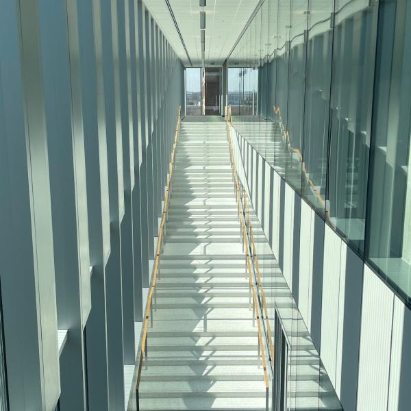 - To support urban wildlife and reduce hazards for migratory birds, the first four floors of the building feature bird-safe window striping, a proven mitigation strategy that makes glass more visible to birds in flight.